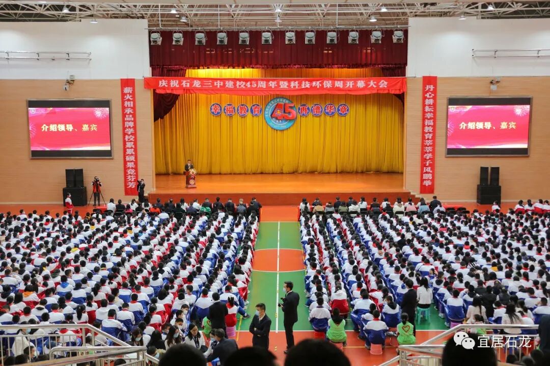 45年栉风沐雨,45年砥砺前行,今年是石龙三中建校45周年。12月8日,石龙三中在学校综合楼体育馆举行“庆祝石龙三中建校45周年暨科技环保周开幕大会”。学校全体行政、师生和家委会成员欢聚一堂共贺校庆。