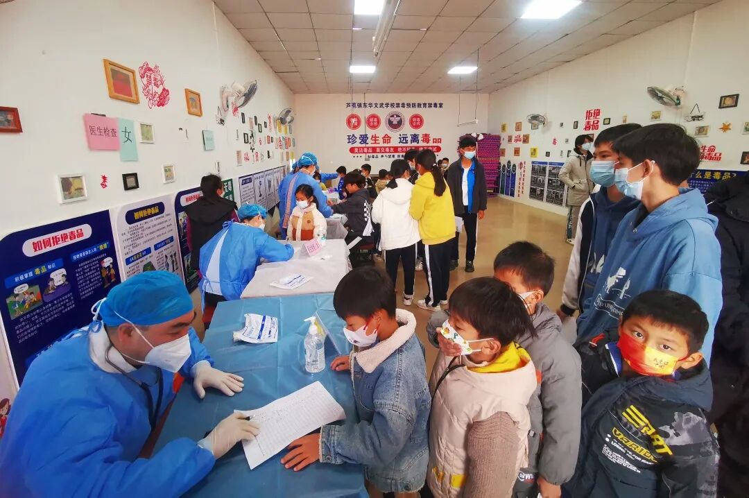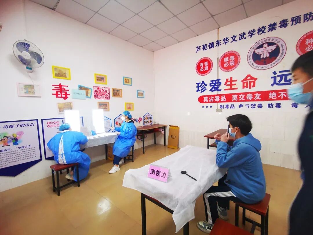 ▲2022年度芦苞镇中小学生健康体检工作走进东华文武学校。