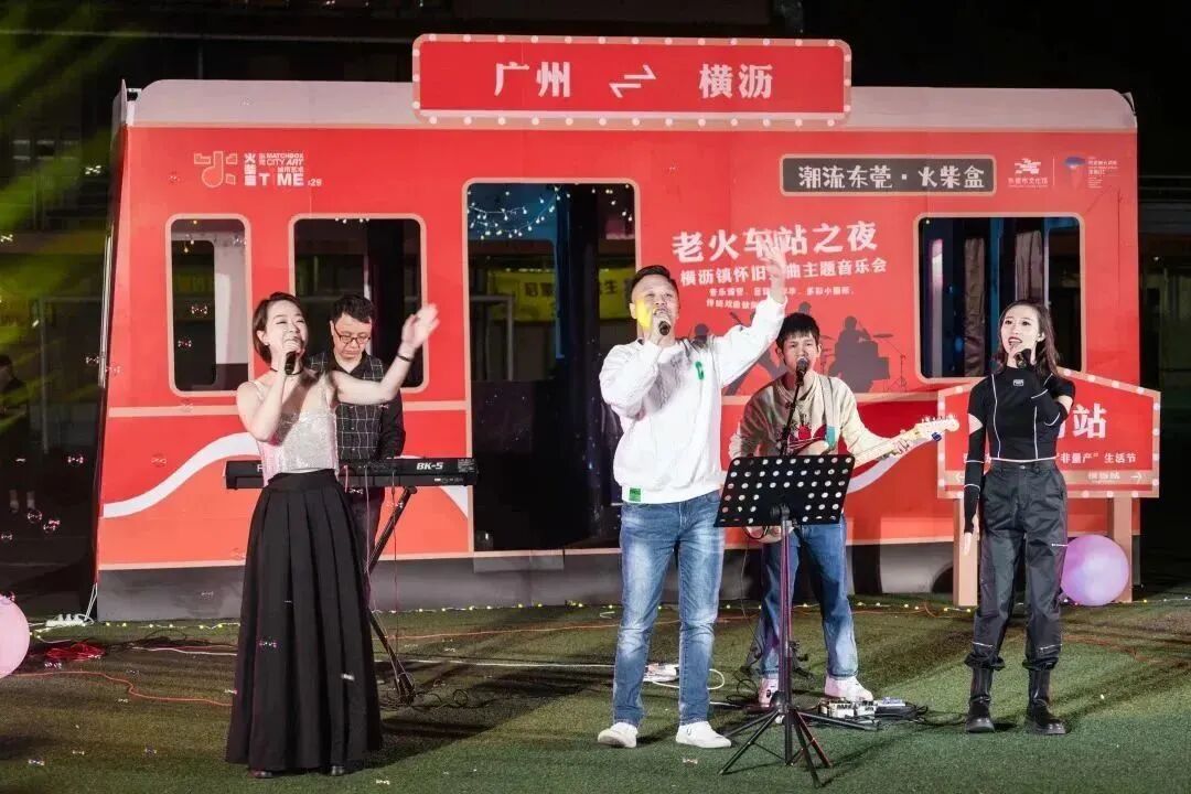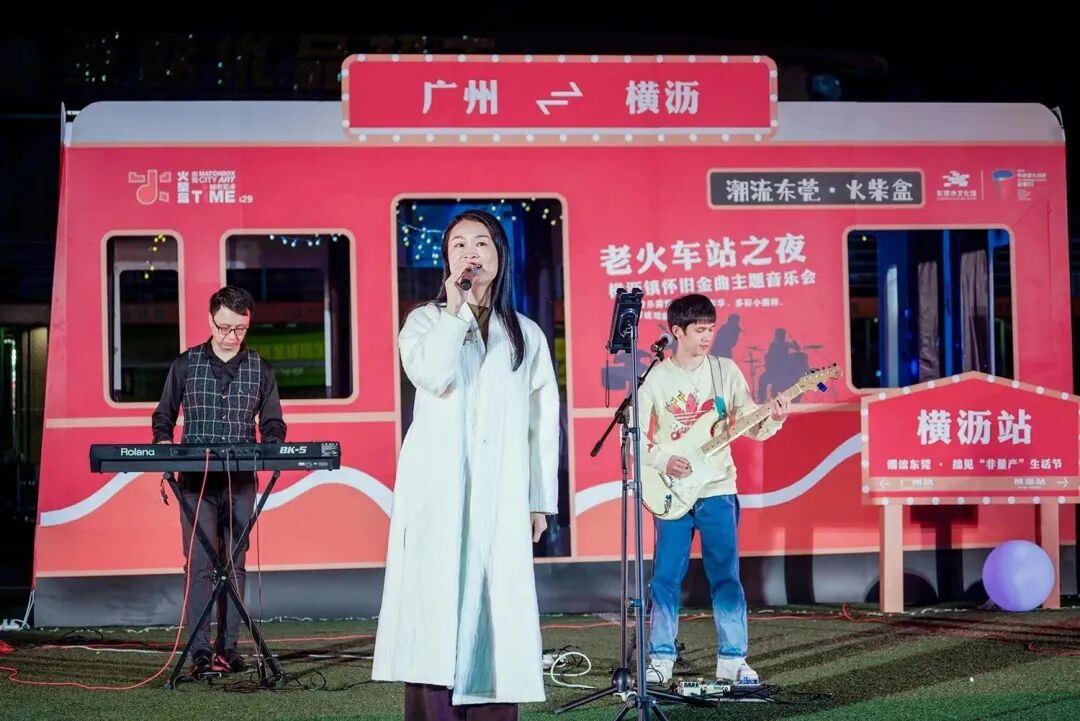 漫步在老火车站的街景中,欣赏一场怀旧音乐会,享受休闲露营生活,参加文化艺术体验活动。12月10日晚,“潮流东莞·火柴盒”“老火车站之夜”城市艺术TIME横沥怀旧音乐会在横沥老火车站街区古思图足球场倾情上演,这个“露天的文化馆”让现场的群众度过了一个美好的夜晚。本次活动从9日至11日晚,连续举办三场。东莞市文化馆馆长黄晓丽、横沥镇委副书记张超观看了当晚的演出,并与观众互动。