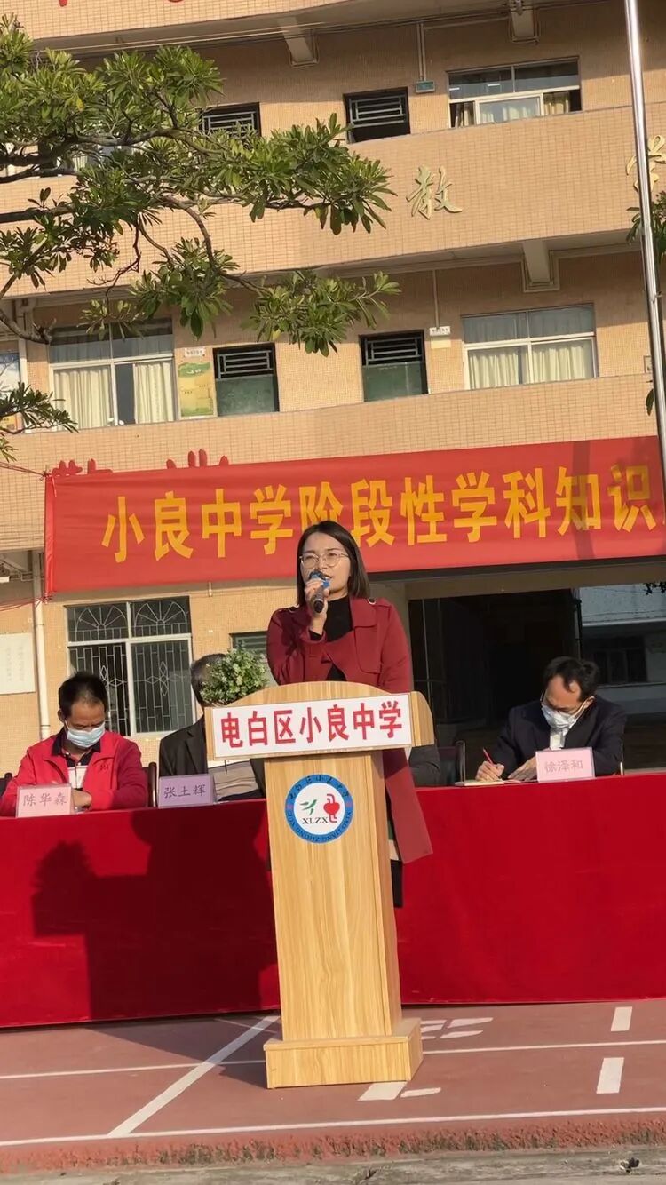 冬日暖阳展笑靥,风光无限似逢春。12月12日,电白区小良中学召开阶段性学科知识质量测评总结暨表彰大会。出席本次会议的领导有李用敏校长、徐泽和副校长、梁映霞副校长及学校全体中层干部。大会由杨梅芳主任主持。