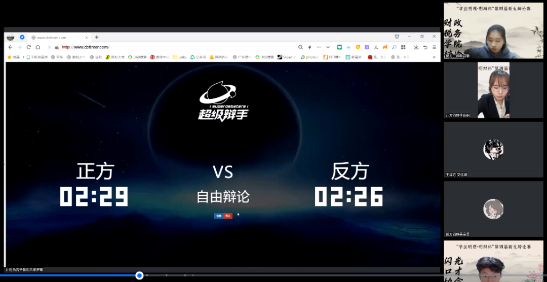 决赛围绕辩题“普法重在普及法律规则/法律文化”展开,正方辩手以“普及法律法规可以避免违法而不自知,还能帮助大众用法自保”立论,反方侧重从知法犯法的现象展开探讨,从而推导出“普及法律文化可以帮助大众主动守法”的结论。双方据理力争、当仁不让,立论、攻辩、自由辩论、总结陈词的环节都给直播间的领导嘉宾及观众留下深刻印象,最终正方以微弱优势获胜。