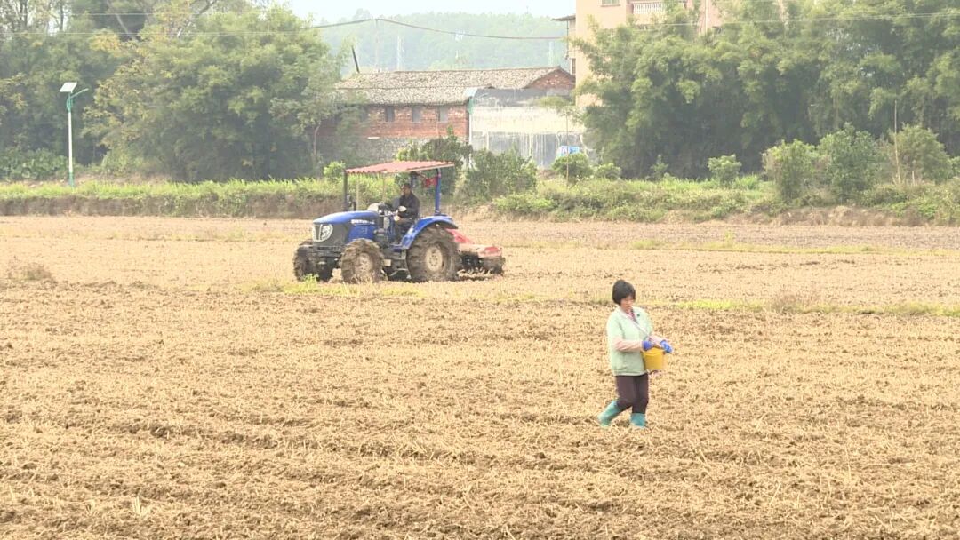 当前,正值冬种油菜花好时节,在佗城镇苏堤旁的大片农田里,村民们在忙碌地翻整土地、排水开沟、播种栽植,现场一派繁忙的农耕图景。