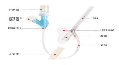 静脉留置针是由不锈钢的针芯、柔软的外套管及塑料针座组成。穿刺时将外套管和针芯一起刺入血管中,当外套管送入血管后,抽出针芯,仅将柔软的外套管留在血管中进行输液治疗的一种输液工具。