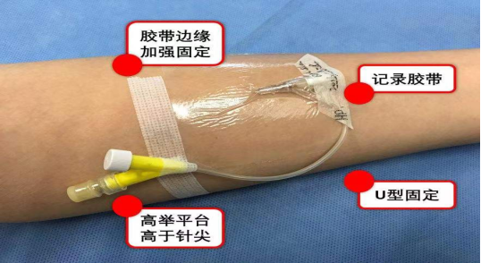 3. 注意保护留置针留置肢体,不输液时,避免肢体下垂姿势,避免重体力劳动,避免用有留置针的肢体用力撑床,以免重力作用造成回血堵塞导管。