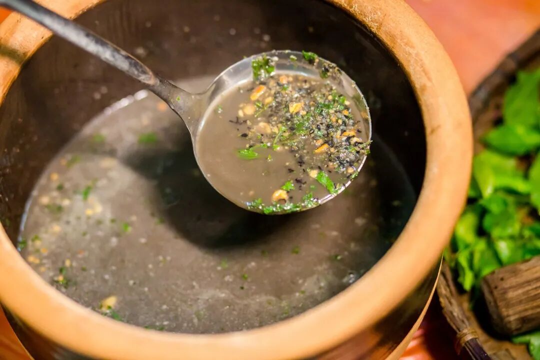 略带苦涩的茶汤融入了芝麻和香菜的香气