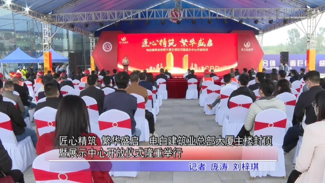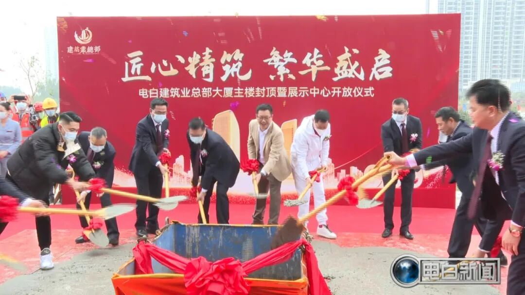 活动现场播放了电白建筑业总部大厦项目宣传片,区住建局、电白建筑协会相关领导作了致辞。随后在大家的共同见证下,电白建筑业总部大厦主楼进行了浇筑仪式,象征总部大厦主楼喜封金顶。活动现场还举行了电白建筑业总部大厦展示中心开放仪式。