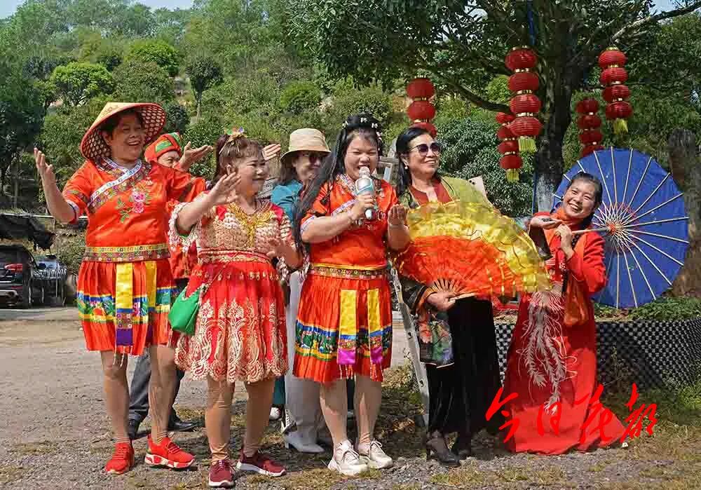 花木场有3000多亩各种桂花树,尤其黄金桂的数量较多,每年这个时候都会有极少量的黄金桂长出桂子,成熟后呈紫黑色,像一串串葡萄,吸引了大量游客前来观赏。来自增城的郭雅桃女士是广州市客家山歌传承人,去年慕名来观赏后,今年特意带了一帮歌友前来游玩,并和梯面当地的客家山歌爱好者一起唱山歌。她说,梯面山清水秀空气好,有美景、有歌友、有美食,感觉特别开心。