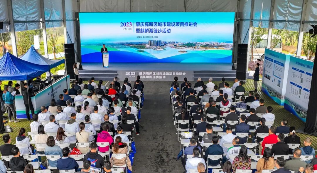 春意盎然,万物勃发。3月31日,在美丽的麒麟湖畔,肇庆高新区举行了城市建设项目推进会暨麒麟湖徒步活动,庆祝改造完工的麒麟湖公园顺利投入使用,推介麒麟湖周边优质商业商务地块、优质房地产资源,就高新区文化中心、中心人民医院建设征询意见,以凝聚社会各界力量,加快建设粤港澳大湾区工业科技新城。