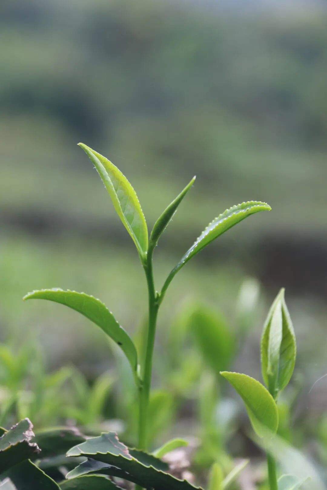 茶树的嫩芽一天一天往外长