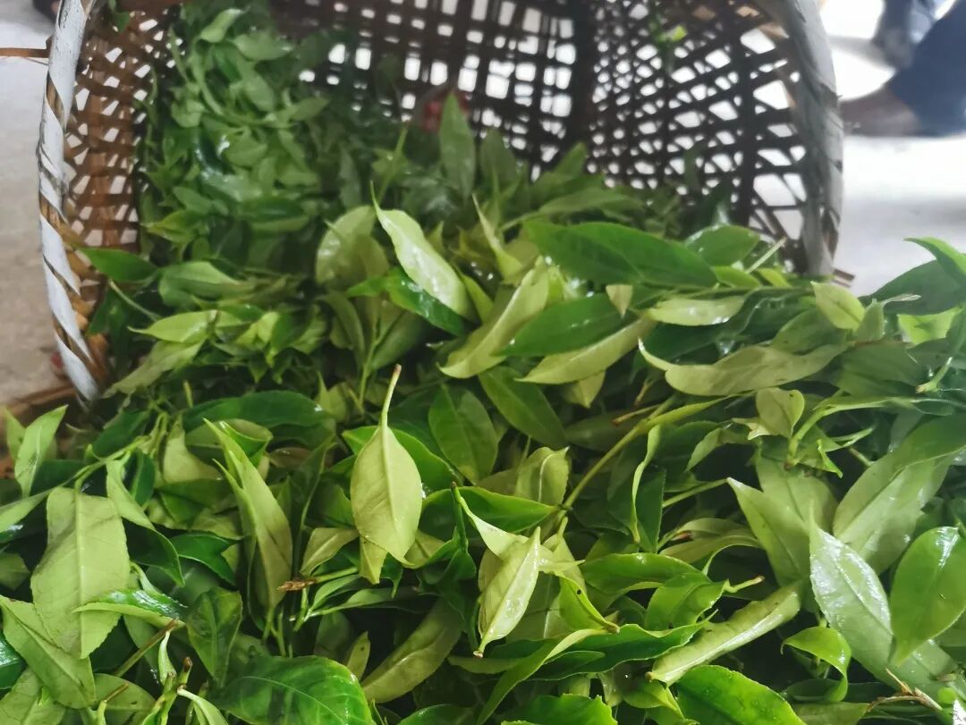 采下来的鲜叶色泽翠绿,叶质柔软