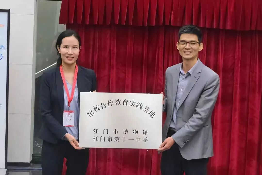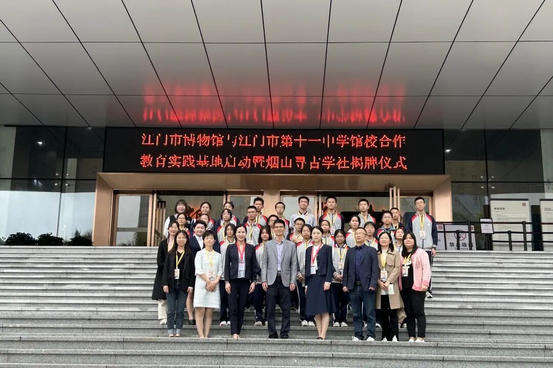 江门市博物馆与江门市第十一中学建立馆校合作教育实践基地,旨在全面贯彻党的教育方针,有效促进博物馆资源与中小学课堂教学、综合实践活动的有机结合,建立中小学生利用博物馆学习的长效机制,引导学生切身感受家乡的历史文化,感知历史、热爱文物,激发学生的民族自信心和文化自豪感。