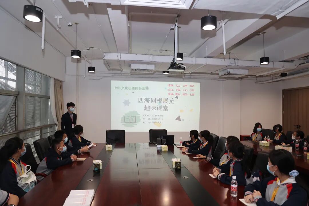 江门市第十一中学学生代表参与了一场精彩生动的趣味课堂。江门市博物馆社教专员通过图片给学生们介绍“四海同根”展览内容,深入展开侨批历史介绍,让同学们学会阅读侨批中的苏州花码。问答环节,学生代表运用趣味课堂上学到的知识进行抢答,华侨文化也在一次次问答中传播给课堂中每一位学生。
