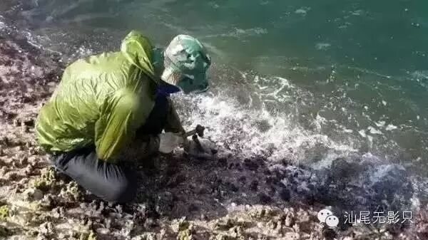 采集湿斗是很辛苦的体力活,开船入海,找礁石,潜入海水,凿石头一样坚固的湿斗。