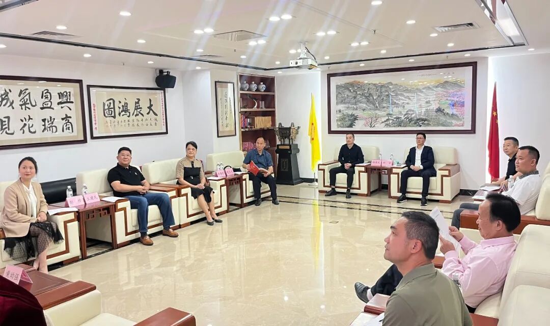 2023年4月17日,梅州市总商会副会长、兴宁市工商联主席、总商会会长杨亚文,兴宁市委统战部副部长、市工商联党组书记、市非公党委书记曾巨文,兴宁市工商联党组成员、副主席、市非公党委副书记黄海珍,兴宁市工商联副主席、总商会副会长王建民,兴宁市工商联执委郭珍,兴宁市工商联会员部部长、四级主任科员黄幼强一行莅临广州市兴宁商会交流座谈。梅州市工商联副主席、兴宁市总商会名誉会长、广州市兴宁商会会长、党支部书记钟坚,执行会长兼秘书长陈紫彬,梅州市工商联常委、兴宁市工商联副主席、兴宁市总商会监事长、商会执行会长罗敬东,常务副会长陈远思等热情接待并在商会会议室座谈交流。会上与会领导一同观看了商会宣传片和十周年盛典等视频。