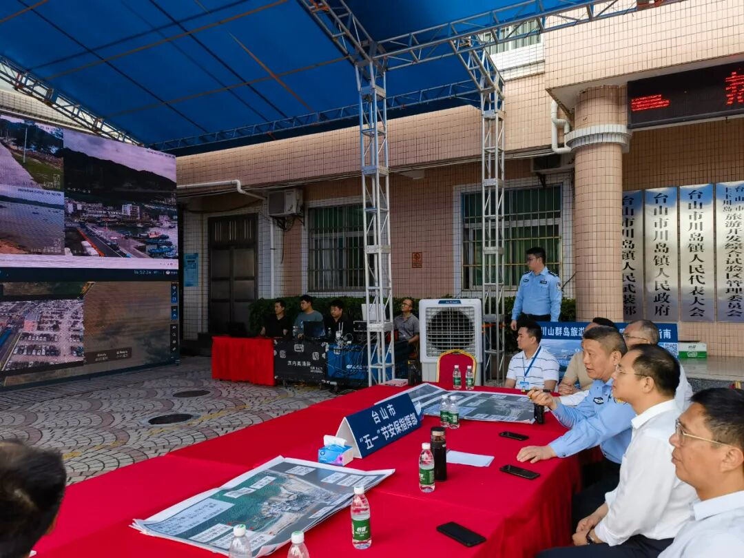 台山市在川岛山咀码头设交通安保前线指挥部,现场设立电子屏幕实时监测全市交通情况,及时分析研判旅游交通安保形势,全力做好重点旅游片区交通秩序管理,确保旅游交通安全、畅通、有序。