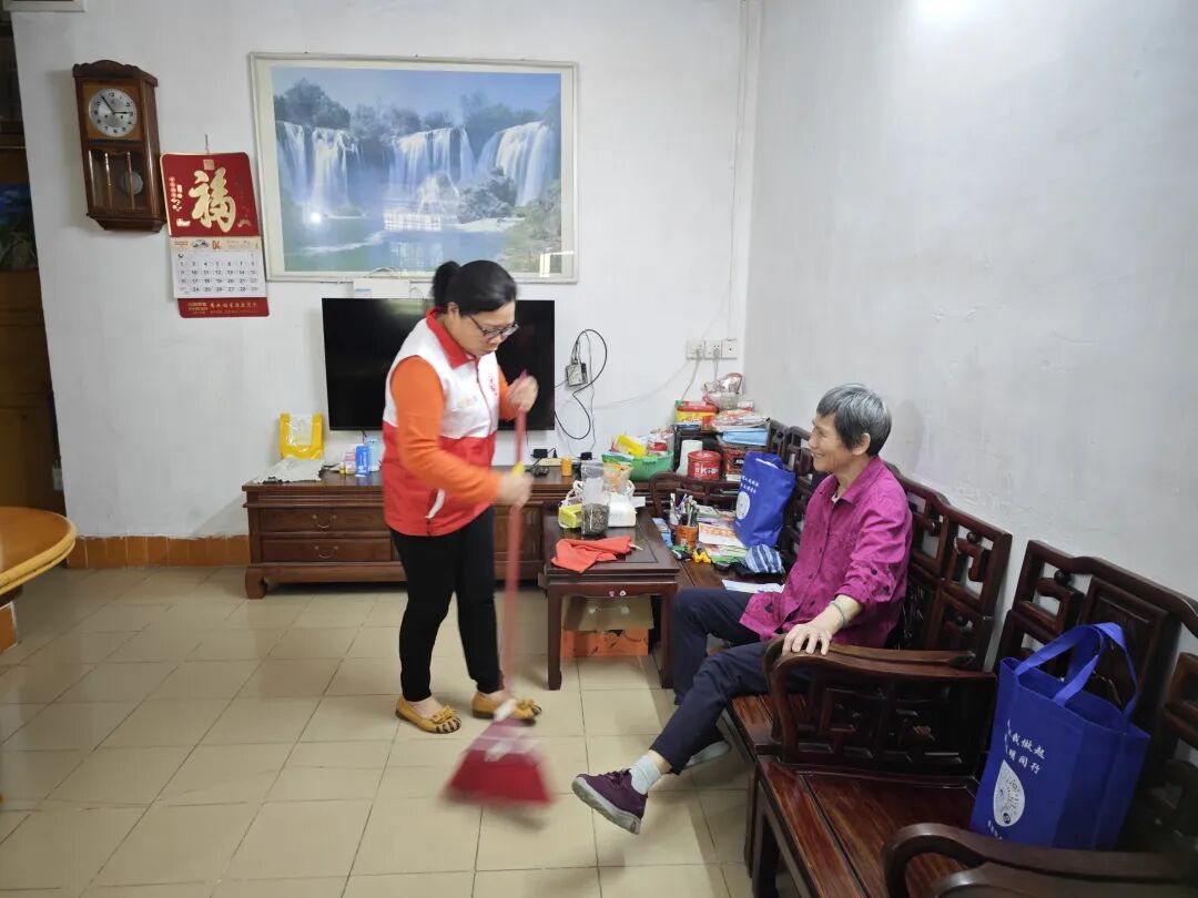 “朱婆婆,我是爱心志愿者,过来帮你清洁卫生了。”