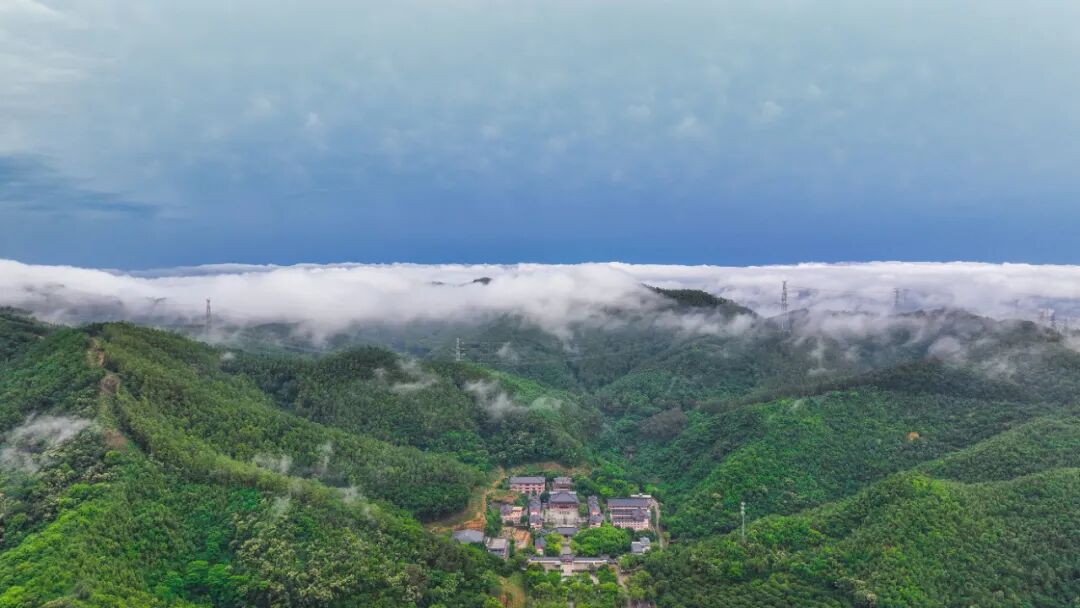 5月7日,大雨过后,芙蓉寺上空云蒸霞蔚,出现了难得一见的景观,仿如人间仙境。从高空俯瞰,层层白云与山间白雾相连,将茫茫的蓝天与郁郁葱葱的山林间隔开来,美不胜收。而云海之下的芙蓉寺,则更显清幽静美。