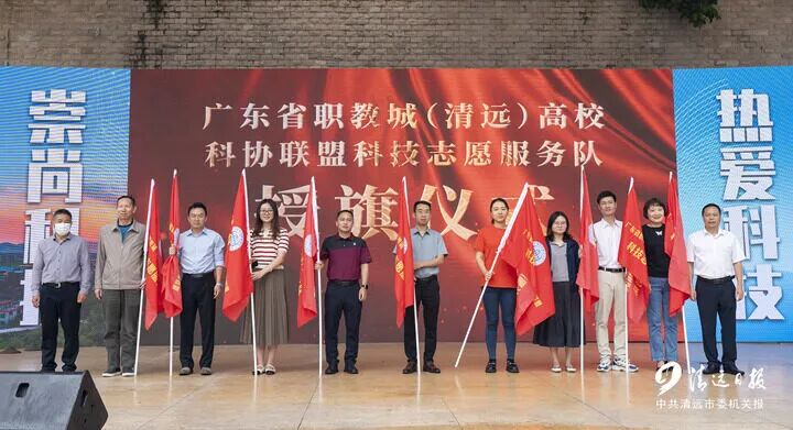 广东省职教城(清远)高校科协联盟科技志愿服务队授旗仪式。