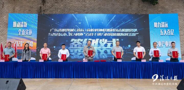 广东省职教城(清远)高校科协联盟代表与各县(市、区)科协签订“百县千镇万村高质量发展工程”协议。