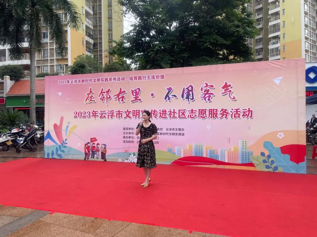 5月13日,由中共云浮市委宣传部、云浮市文明办指导、云城区云城街道天马社区新时代文明实践站主办、云浮融媒(集团)承办的“左邻右里·不用客气”2023年云浮市文明宣传进社区志愿服务活动走进云城区云城街道天马社区,为当地群众带来浓厚的文明宣传气氛。