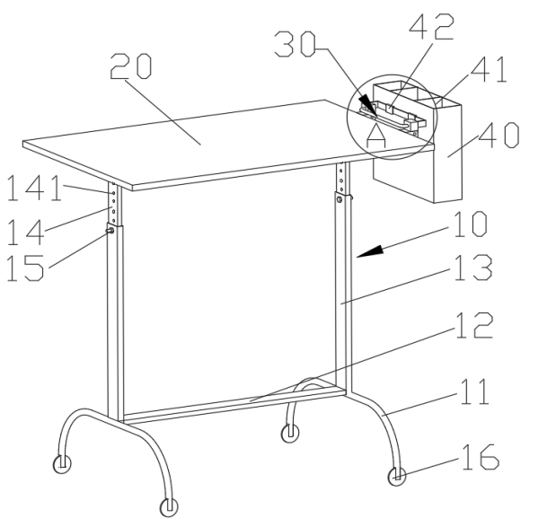 通过简单的结构变换,新型转动固定装置可作为器械盒的挂接架和把手,丰富该装置现有的功能性;借助伸缩节和螺钉,新型桌架可以按需调节桌板高度,方便使用。