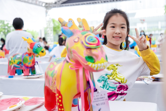 大雨抵挡不住小朋友们的绘画创作热情,一个半小时的绘制时间里,小朋友们创作出色彩、风格各异的小龙马,有的身披五星红旗,有的代表浩渺星空,有的代表着大地与自然,马兴文现场与小朋友们进行艺术交流、共创作品,在孩子心中种下艺术种子,还有摄影师记录参与者拥抱小龙马的温馨时刻用于申请“抱抱小龙马”吉尼斯记录。