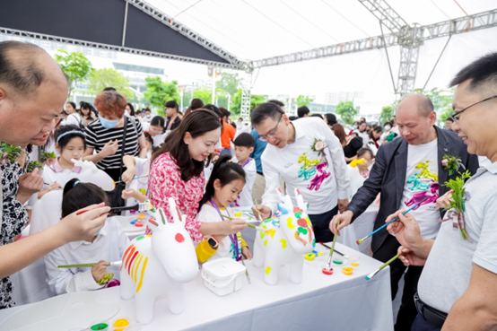 5月13日,“小龙马环游世界”艺术巡展在江海区嘉华新都汇举行,展示艺术家马兴文原创作品,邀请江门艺术家及小朋友代表共创富有江门本地特色与元素的小龙马,带来一场震撼人心的艺术盛宴和新一轮打卡热潮。江门市江海区委常委、统战部部长邓志华,嘉华集团执行董事吕耀华,著名跨界艺术家马兴文参加活动。
