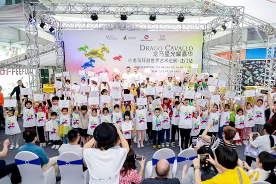 作为中国著名侨乡,江门不仅文化名人辈出,艺术成就卓著,侨乡人民与海外侨胞更是情谊深重。嘉华集团希望通过这次活动,以艺术为媒,为推动江门艺术文化发展贡献一份力量,为中外艺术文化交流提供一个新的平台,让小朋友们了解世界多元文化,培养其探索思维与国际化视野。江门站后,“小龙马环游世界”还将去到北京、武汉、罗马等地,本次艺术巡展的优秀作品也将参与后续活动,带着小龙马的理念与精神,向中国讲好江门故事,向世界说好中国故事。