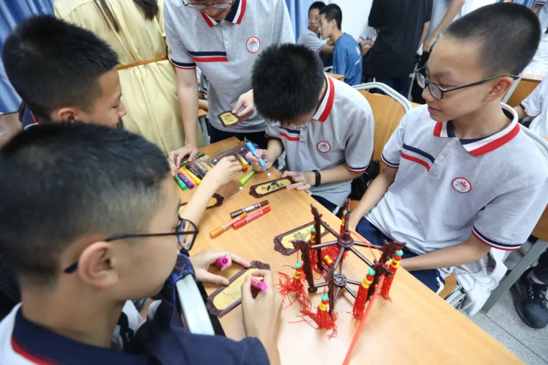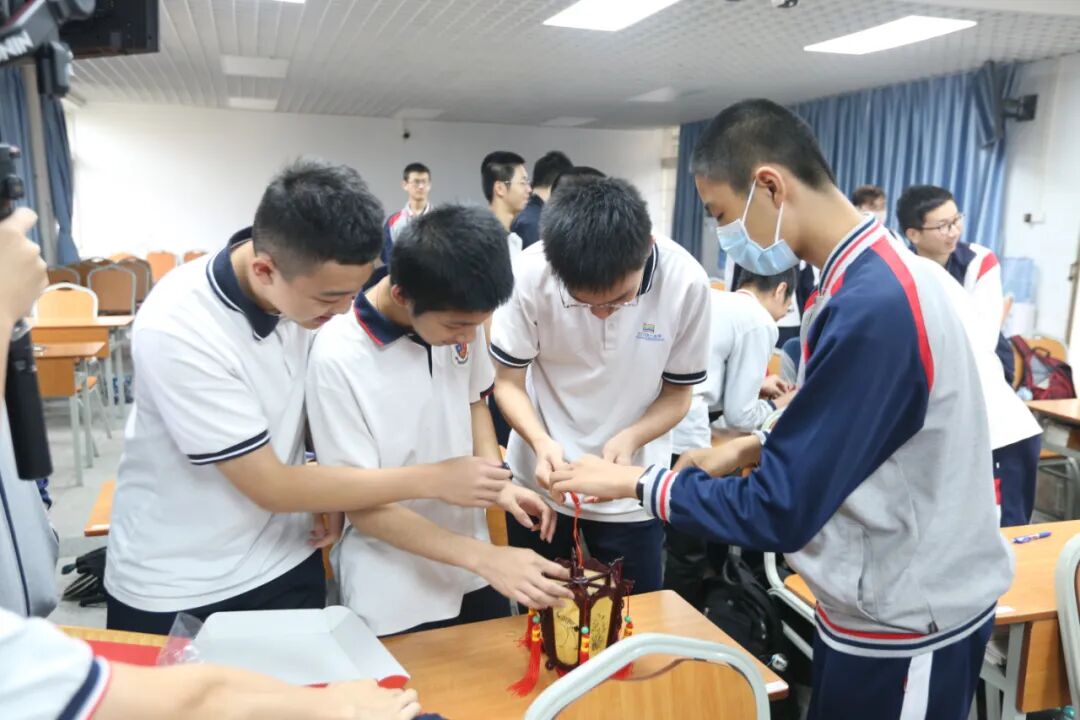 在李仰东老师的指导下,由学生尝试绘制灯身上的画片并最后以小组为单位组装起一盏完整的宫灯,使学生亲身体会到这个非遗项目的内涵与魅力。