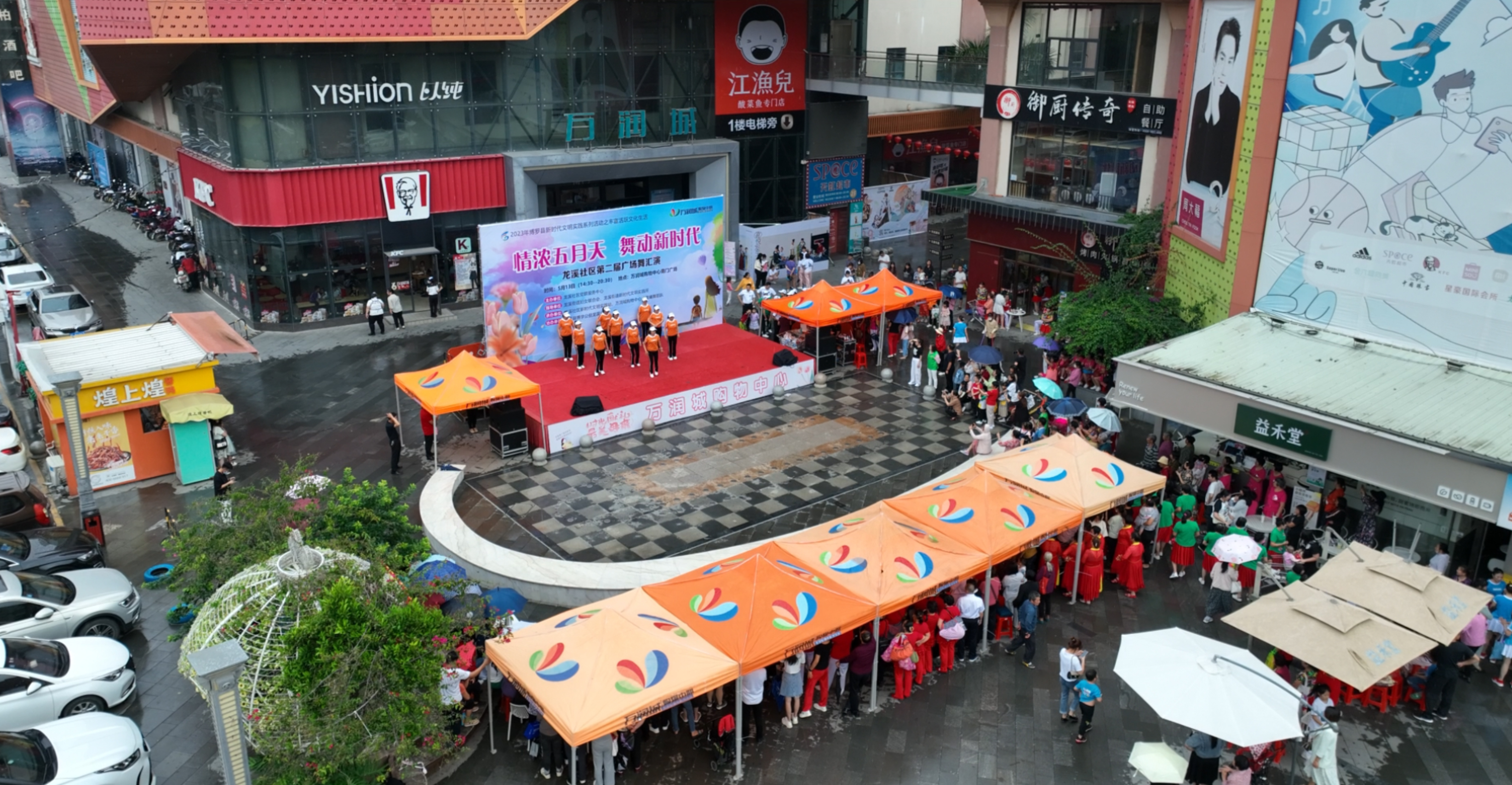 5月13日,博罗县龙溪街道龙溪社区联合志愿者服务队及众多爱心商家组织居民开展第二届广场舞汇演。