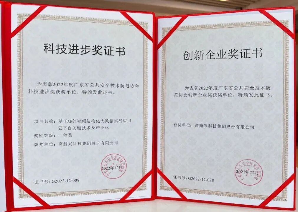图/高新兴荣获安防科技进步奖一等奖和安防创新企业奖