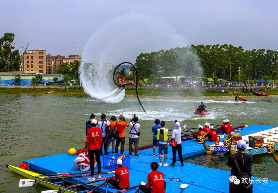 活动邀请了曾多次获得国家级水上飞人项目冠军的队伍带来一场别开生面的水上特技表演,同时来自东莞市游泳中心的教练员带来了专业的赛艇表演,形式多样的水上活动让市民大开眼界,也让现场氛围愈加浓厚。