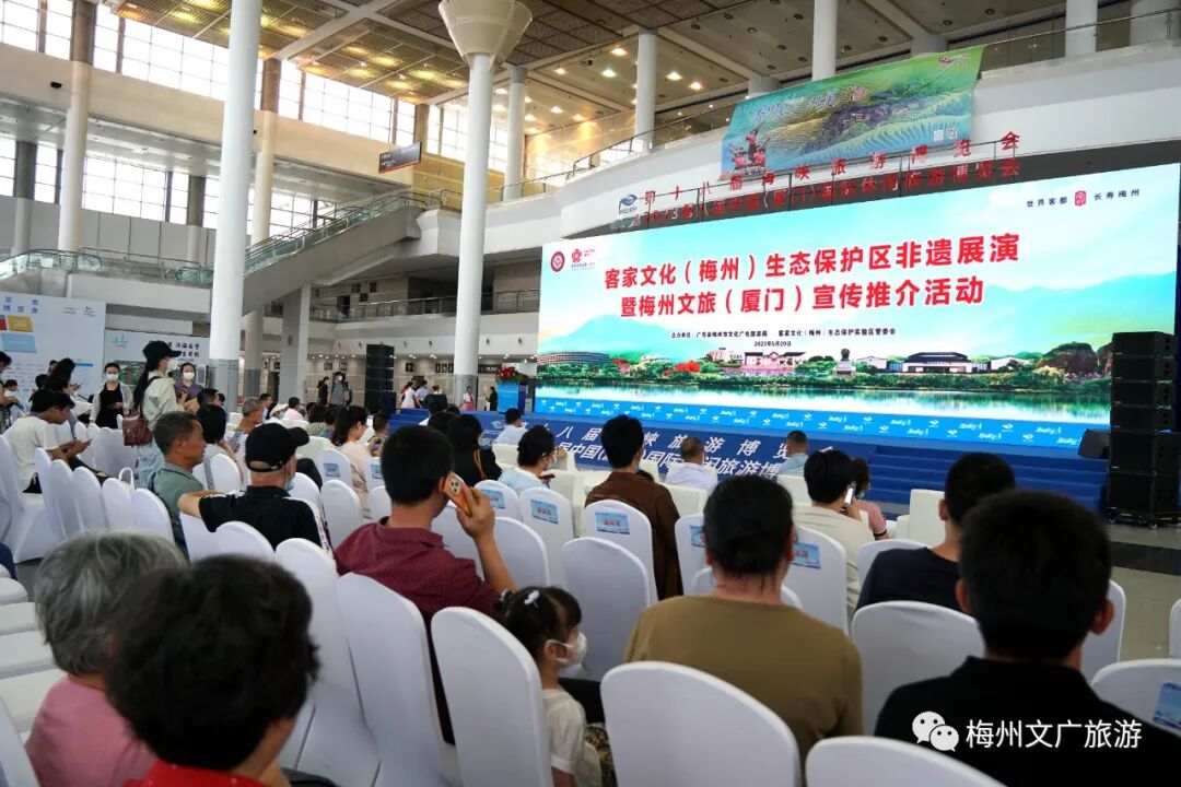 客家文化(梅州)生态保护区非遗展演暨梅州文旅(厦门)宣传推介内容丰富多彩,非遗主题突出,不仅让现场观众在热闹、祥和的氛围中领略客家传统文化的独特与震撼,更借助第十八届海峡旅游博览会国际宣传平台,进一步宣传推介客家文化(梅州)生态保护区和梅州文化旅游资源,持续打响梅州文化旅游特色品牌。第十八届海峡旅游博览会和2023第八届中国(厦门)国际休闲旅游博览会于5月19日至5月21日在厦门国际会展中心举行。
