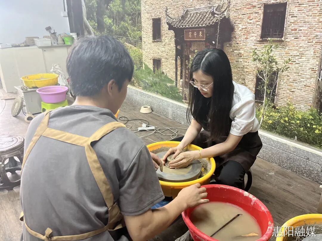 东平窑陶瓷文化园工作人员 施俊欣:我们会先带游客参观了解我们东平窑的文化,以及惠州的文化特点。这对下来游客和小朋友想体验的,也会有一些帮助。比如来这里想进行怎样的创作,后面我们就可以更好地体验文化底蕴。
