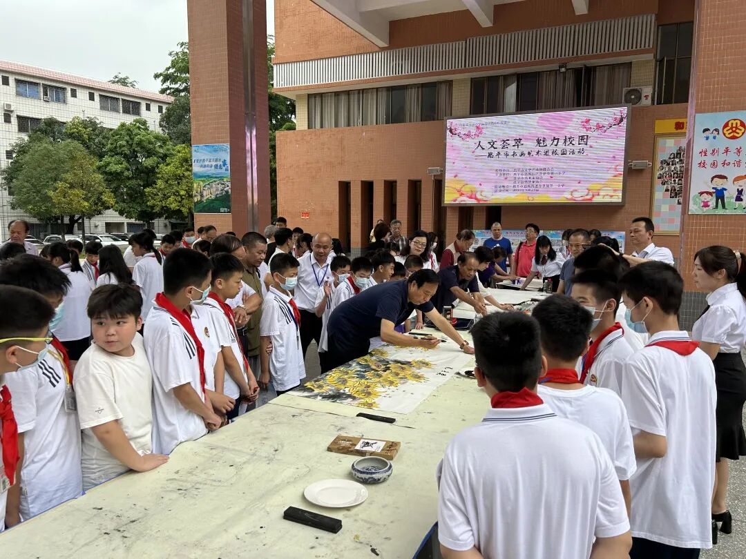 5月24日下午,“人文荟萃 魅力校园”恩平市书画艺术进校园活动在恩城一小城西校区举行,20多位省和江门市的知名书画家与恩平本地书画家一同到场指导,为学校近300名师生送上一堂生动的书法绘画艺术课。