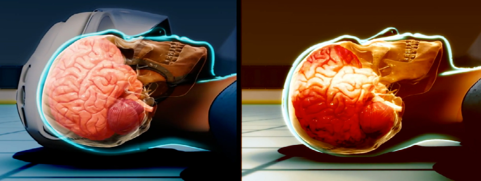 ✔ 头盔保护原理:当驾乘人员头部与地面发生碰撞时,安全头盔的外壳可以扩散一部分冲击力,同时可吸收撞击力,减轻对头骨和脑组织的伤害程度: