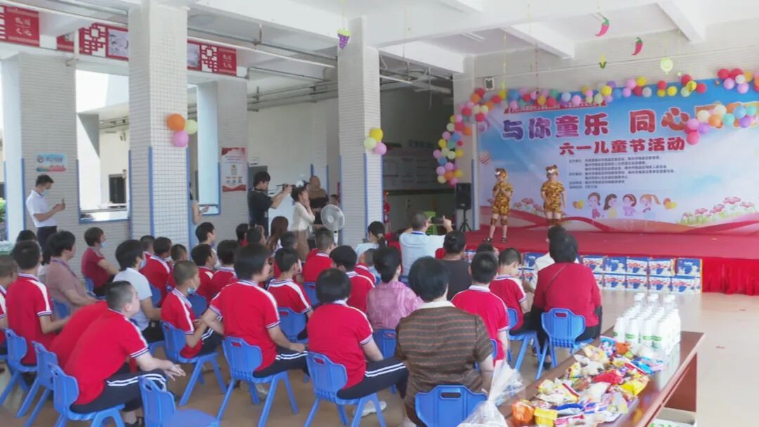 活动现场,器乐表演《中国人》、情景剧《动物王国》、舞蹈《中国少年》等节目轮番上演,学生们用饱满的热情、真诚的表演,展现他们积极乐观的生活态度和自强不息的精神风貌。随后,同学们共同享受美食,在欢快愉悦的氛围中感受节日的美好。现场还举行了体育器材、校服捐赠仪式,并为学生们赠送六一儿童节礼物。