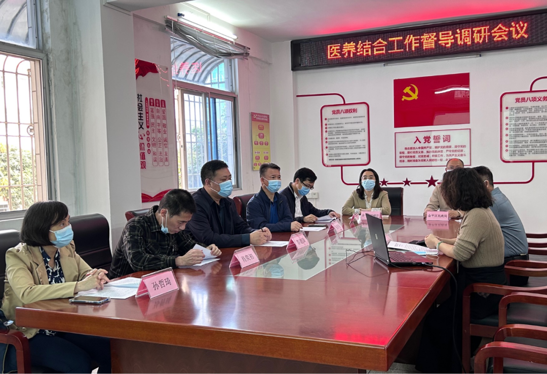 为进一步推进年度老龄健康工作落实、提升医养结合机构服务质量、抓紧医养结合建设发展,近期,市卫生健康局联合市民政局组织开展全市医养结合工作督导调研暨老龄健康工作“深调研”活动。督导调研组由市卫生健康局党组成员、四级调研员苏建国带队,先后深入全市各医养结合机构、各区(县)福利院和部分医疗卫生机构开展调研等系列活动。