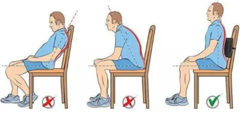 坐姿时背后要有支撑,避免俯身前倾或弯腰前倾等不正确姿势。