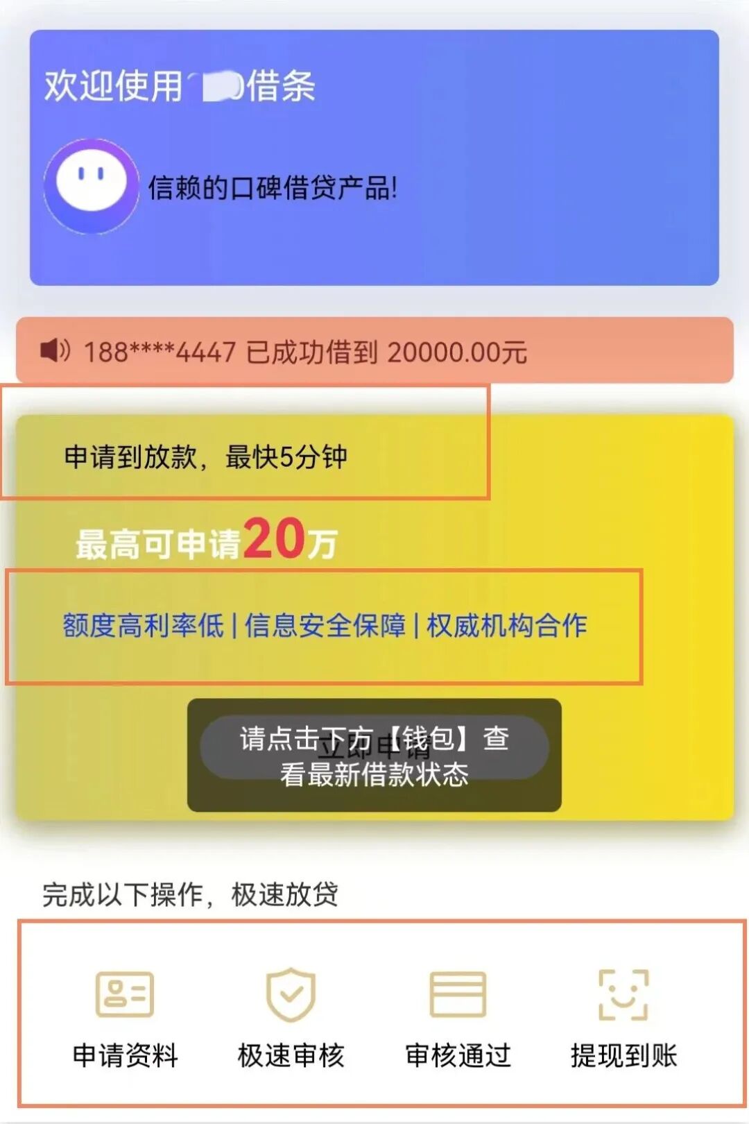 切勿相信各类电话、短信、QQ、微信等形式的贷款广告。