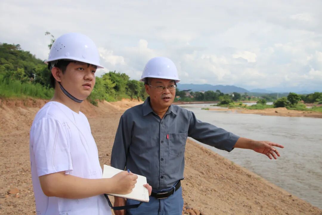 南雄市水务局业务骨干在项目一线指导新录用公务员。