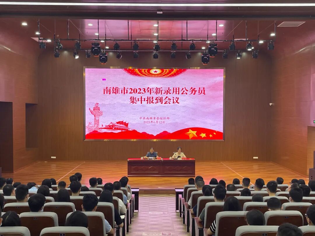 南雄市2023年新录用公务员(第一批)集中报到会现场。