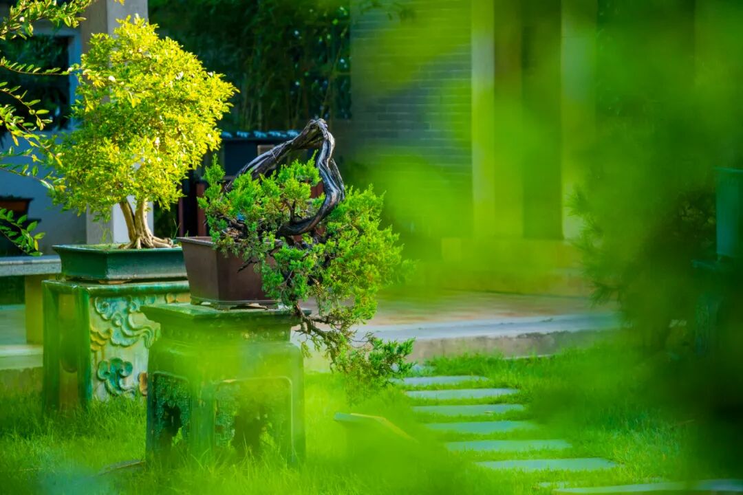 红色榆木的百叶窗,或是绿植点缀的玻璃窗