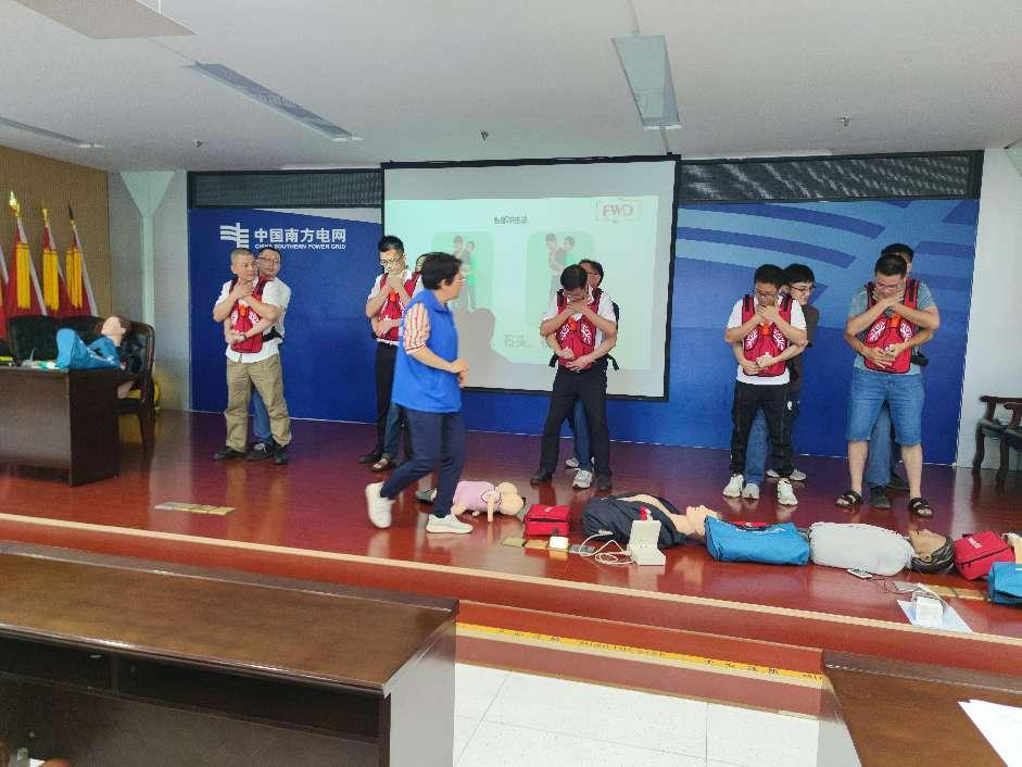 本次科宣讲活动在应急讲师精心准备的科普宣教片中拉开序幕,应急讲师深入浅出地讲解了如何采取有效自救互救措施,科学有效逃生措施、技巧等。同时,应急讲师利用医学人体模特逐一模拟演示了海姆立克急救法、徒手心肺复苏、AED操作、气道异物梗阻、现场急救法、创伤包扎等急救环节要点和注意事项,让供电系统全体员工对应急救护知识有个基本的了解。在讲解结束后,供电系统员工为做到学以致用,积极踊跃上台实践应急救护技能,对各个操作要领和流程进行操作演练。