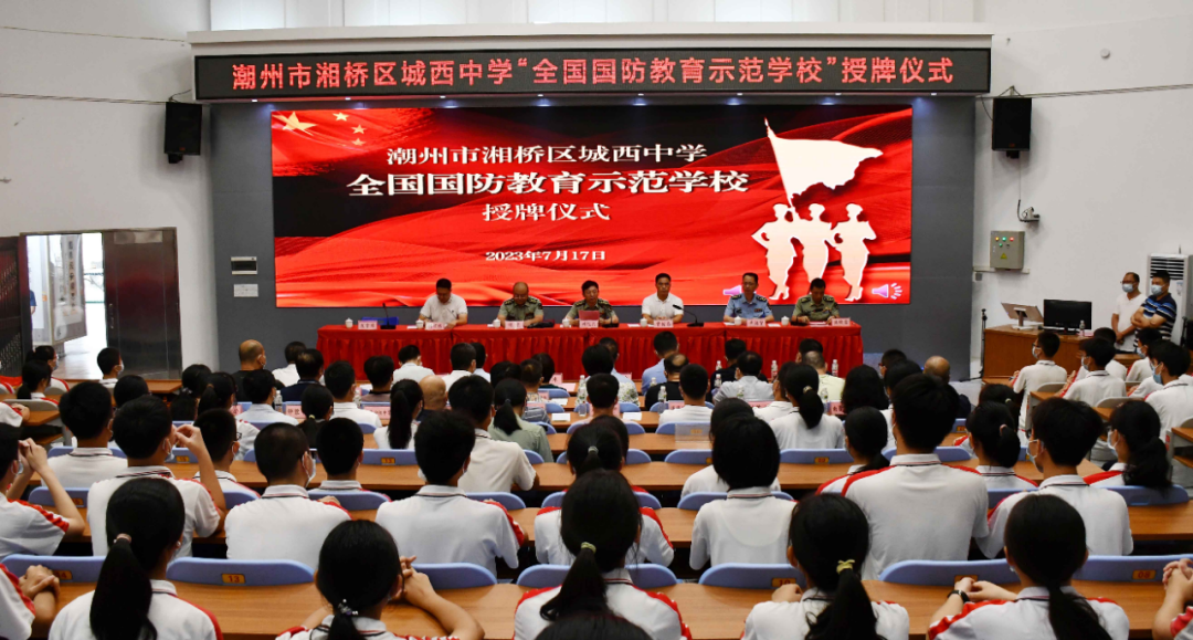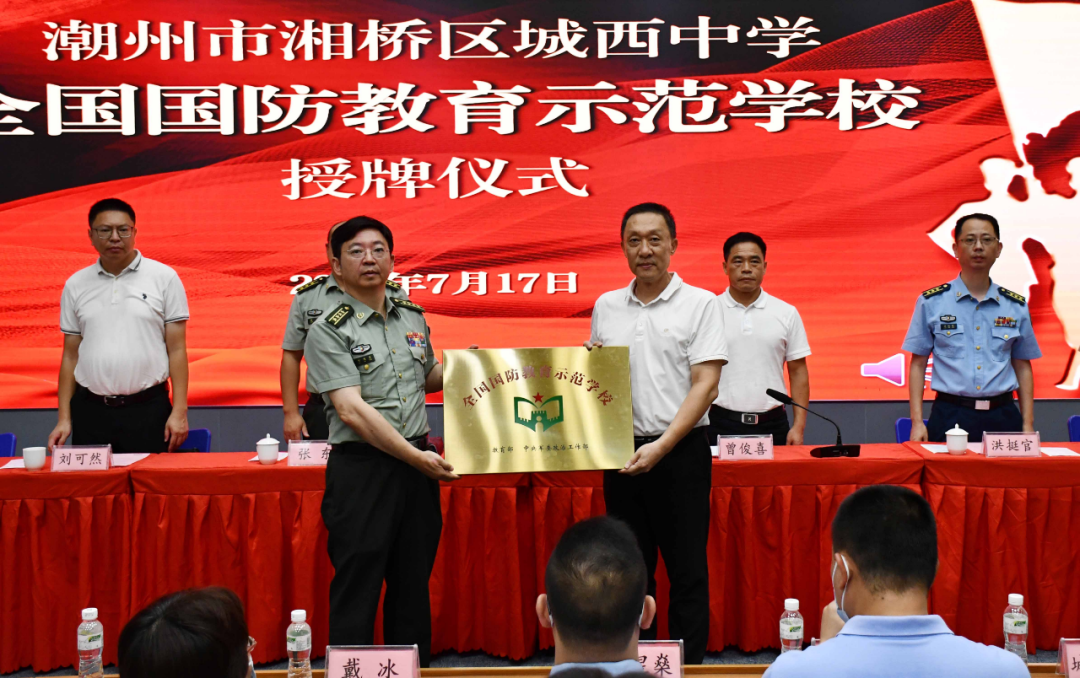 7月17日,湘桥区在城西中学隆重举行“全国国防教育示范学校”授牌仪式。“全国国防教育示范学校”由教育部和中央军委政治工作部联合授牌,湘桥区城西中学是全市首批、全区首所获此殊荣的学校。