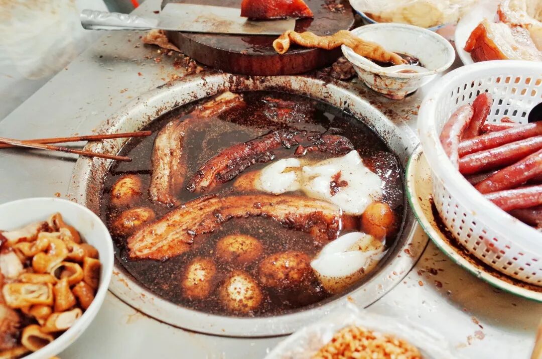 潮汕人的早餐,还有这道常见的早餐:加了卤味的粿汁。粿汁是用米粉制成的粿条煮制而成的,煮时加入米浆,使之稠粘。