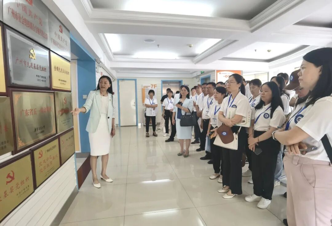 孟昕副秘书长首先代表广州社联欢迎阳江市社会组织参访团的到来,并带领参观广州市社会组织党建馆与广州社联秘书处办公区,详细介绍了广州社联党建工作、组织架构、业务开展、会员服务等情况。广州社联是广州市5A级品牌社会组织,2021年获民政部授予的“全国先进社会组织”荣誉称号。