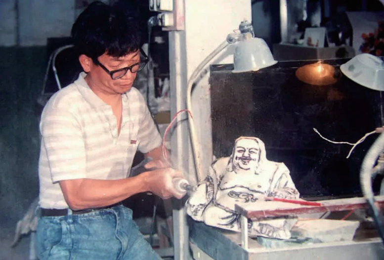 广东省工艺美术一级大师蓝君基在雕琢玉佛