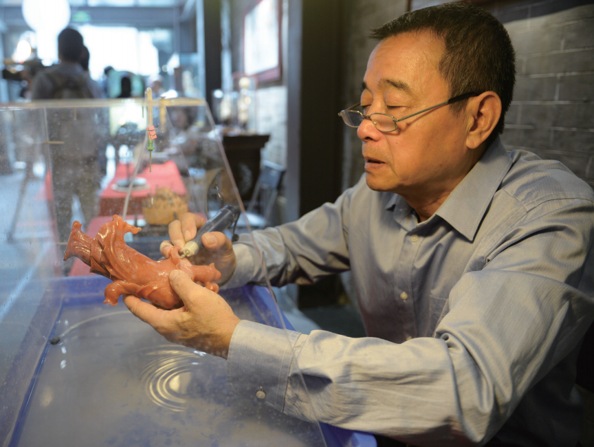 国家级非遗传承人高兆华进行玉雕创作