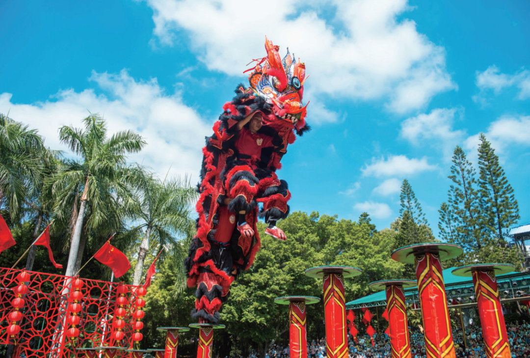 高攀低戏、桩上采青,表演惊险刺激,集武术、舞蹈、音乐于一体,是醒狮给人们带来的视觉盛宴。
